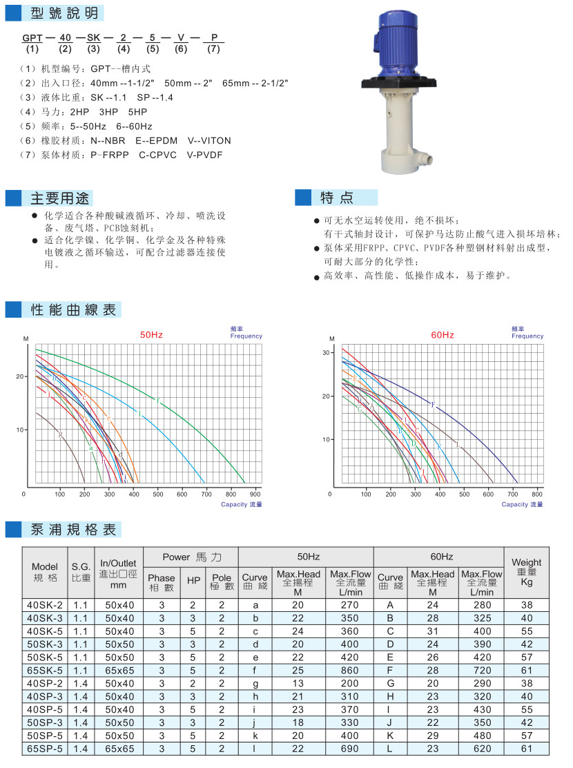 可空转直立式耐酸碱泵浦 GPT型