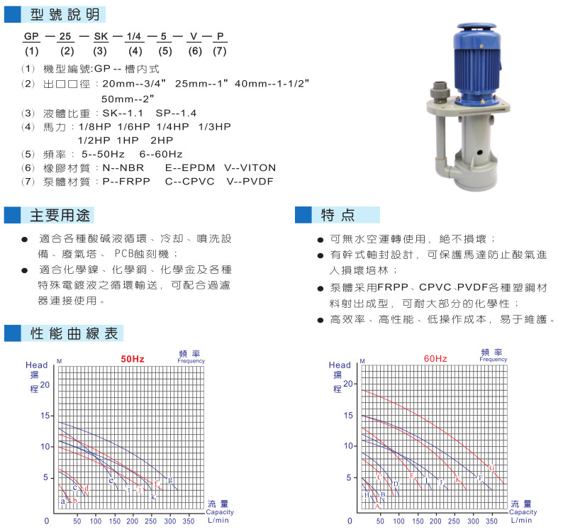 可空转直立式耐酸碱泵浦 GP型