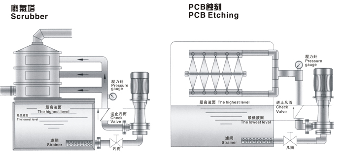 4、配管前应先考虑使用之化学液体、温度条件及输送扬程,选择不同之管件材料,符合实际之要求。例如:温度60℃以上,应选择PP管件安装。