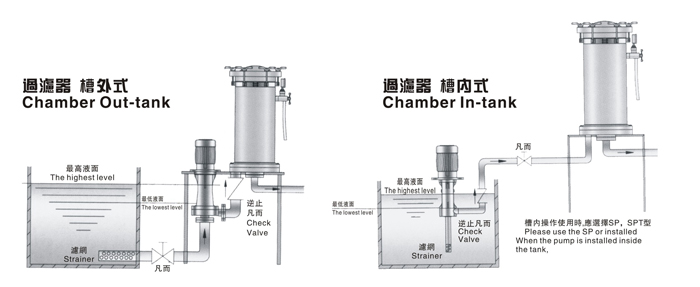 ·入口处为安全起见,最好装置过滤网以免吸入杂物损坏泵浦(滤网孔面积约直径5位以上)。